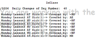 On the start up of in InClass there is an extra login for the daily organiser with name and password. The daily organiser cannot change the current timetable but uses it to announce the necessary changes required for the current day.
